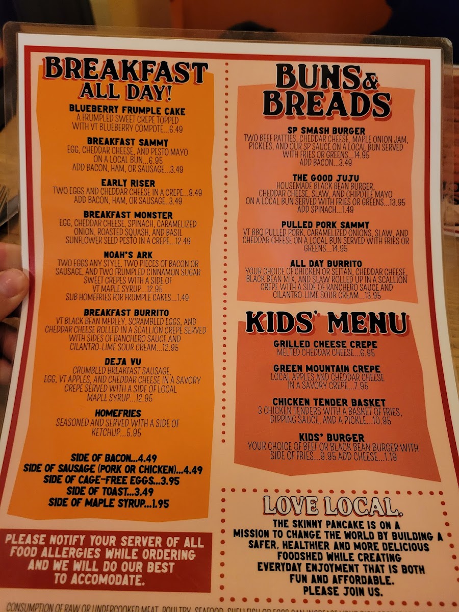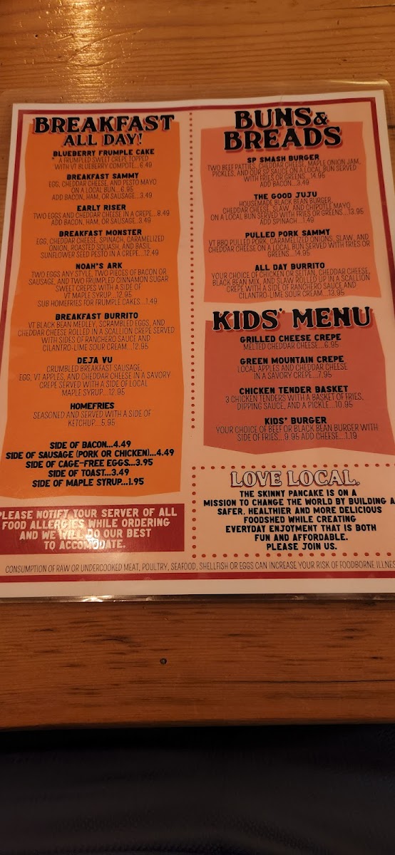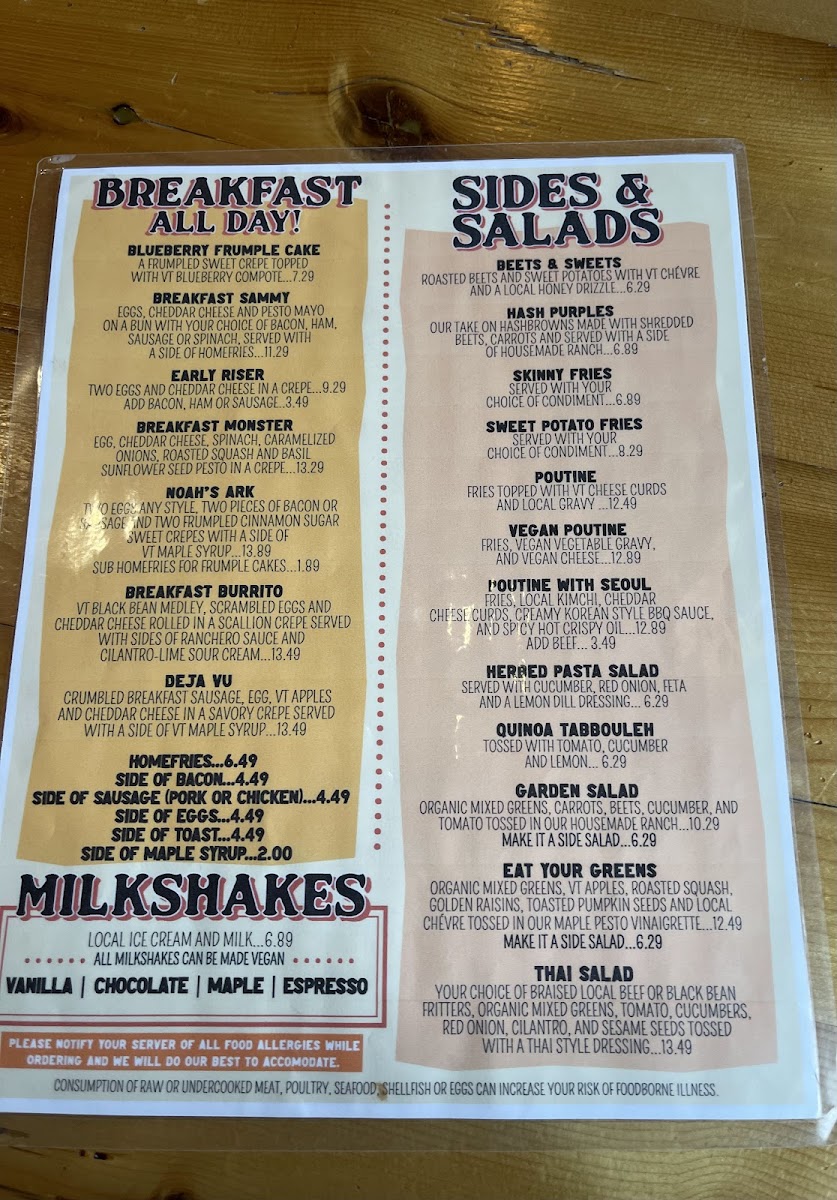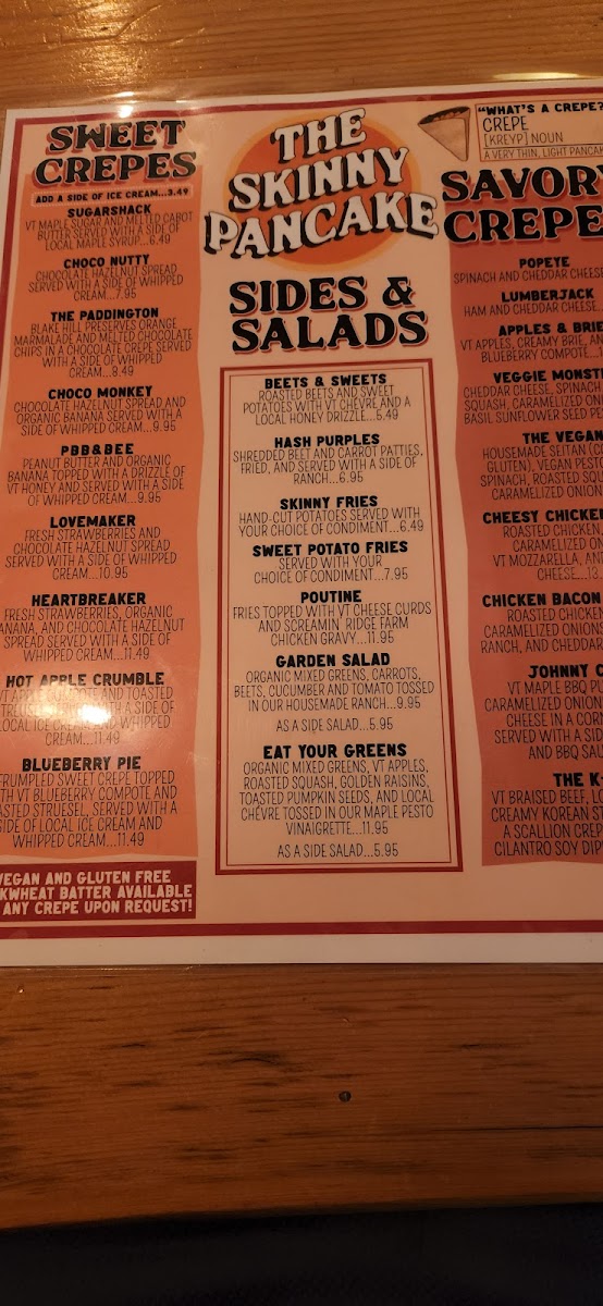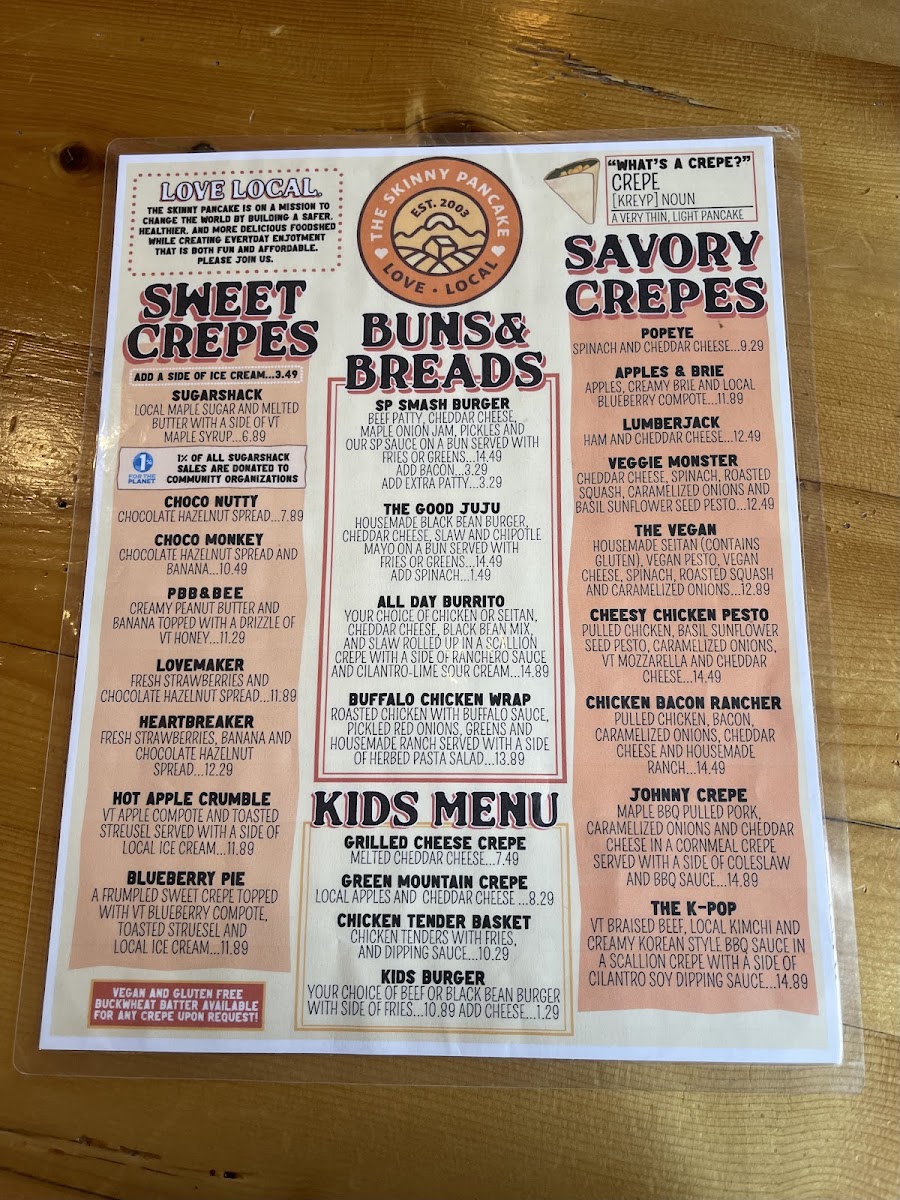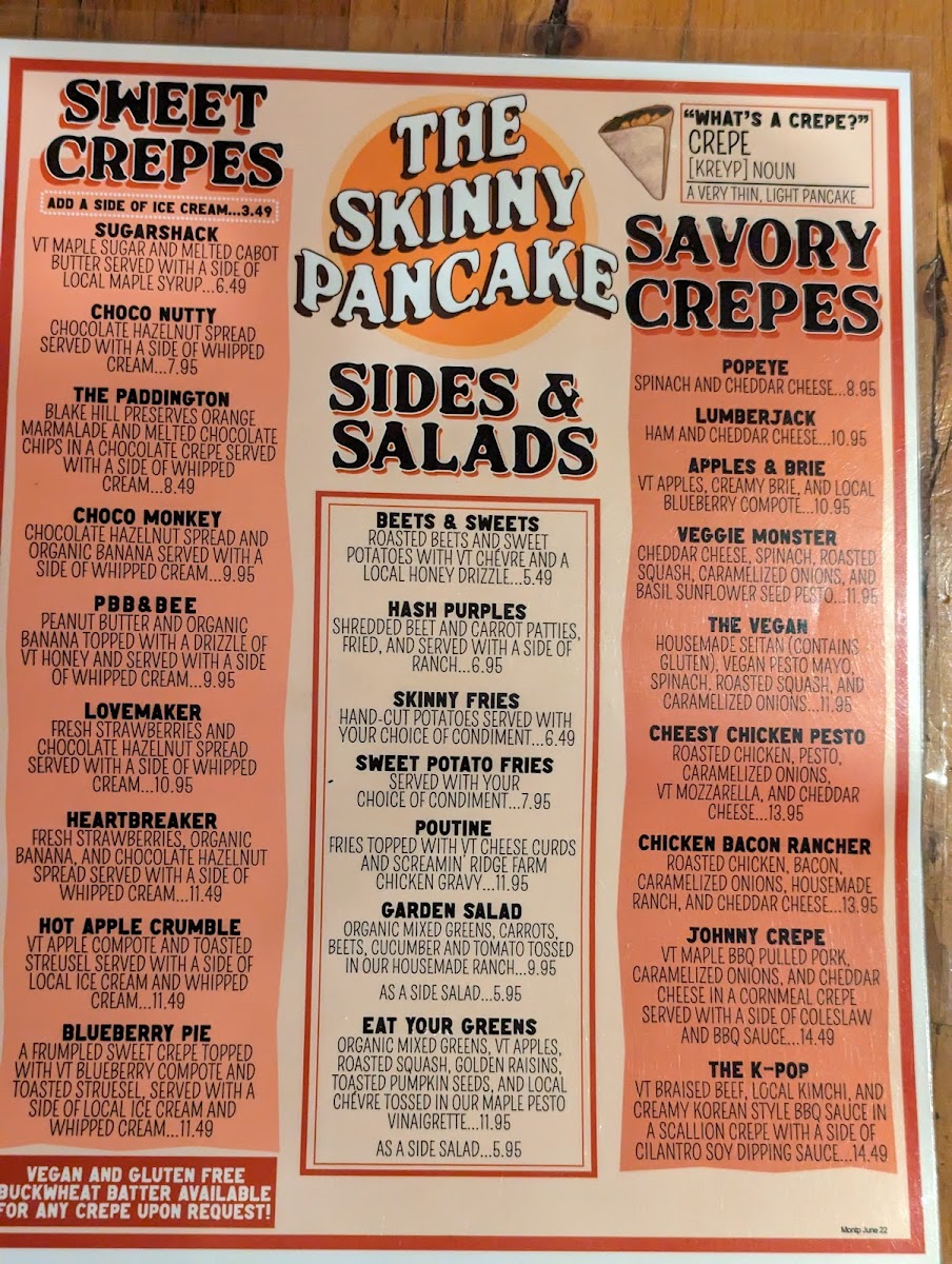 Cage-free egg, local ham, Cabot cheddar and a side of VT maple syrup on a sweet crepe